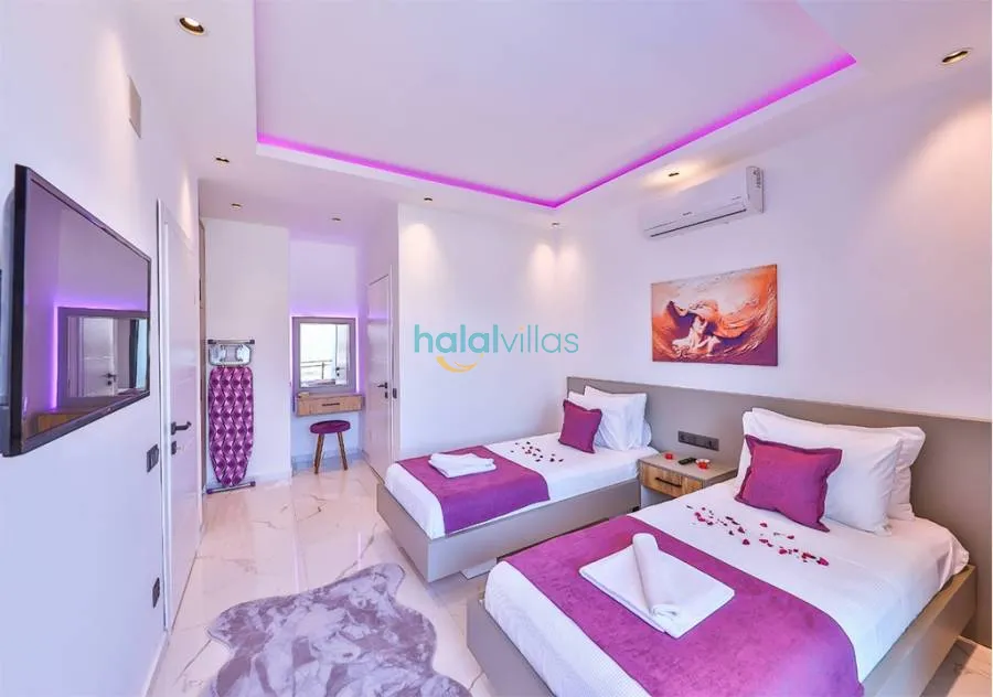 Teen Bedroom: Features two single beds, wardrobe, dressing table, air conditioning, bathroom, and toilet.