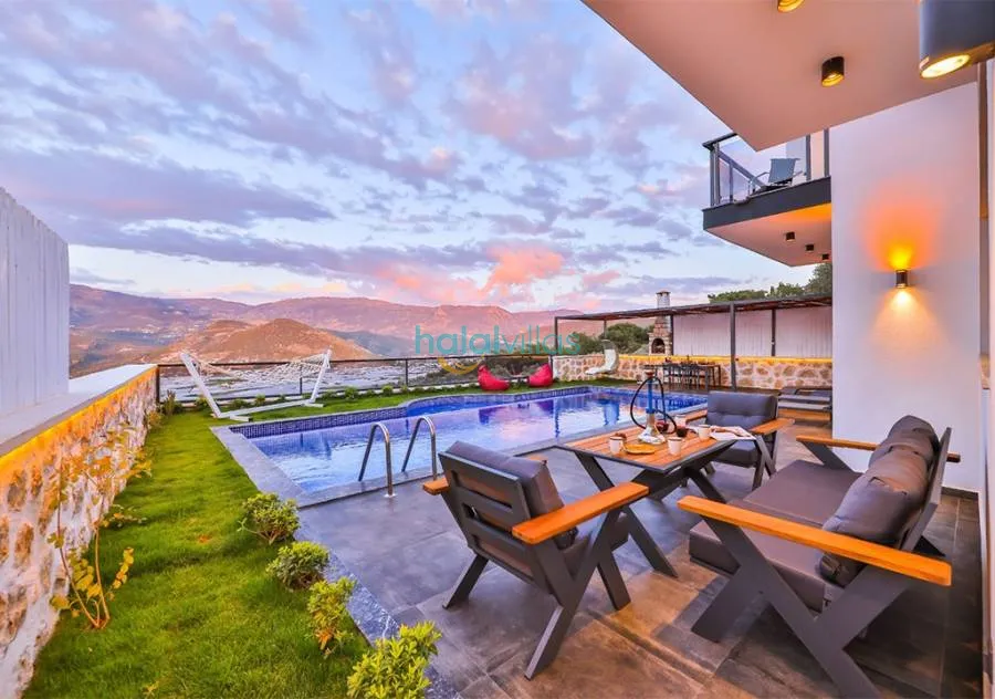 3 BedNestled in the tranquil area of Yeşilköy, Kalkan, this 2-bedroom villa is perfect for up to 4 guests, offering a serene escape from the city's hustle and bustle. Surrounded by nature, the villa’s pool area is completely private, making it an excellent choice for conservative families and honeymoon couples.