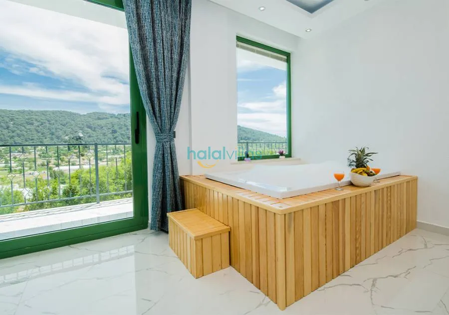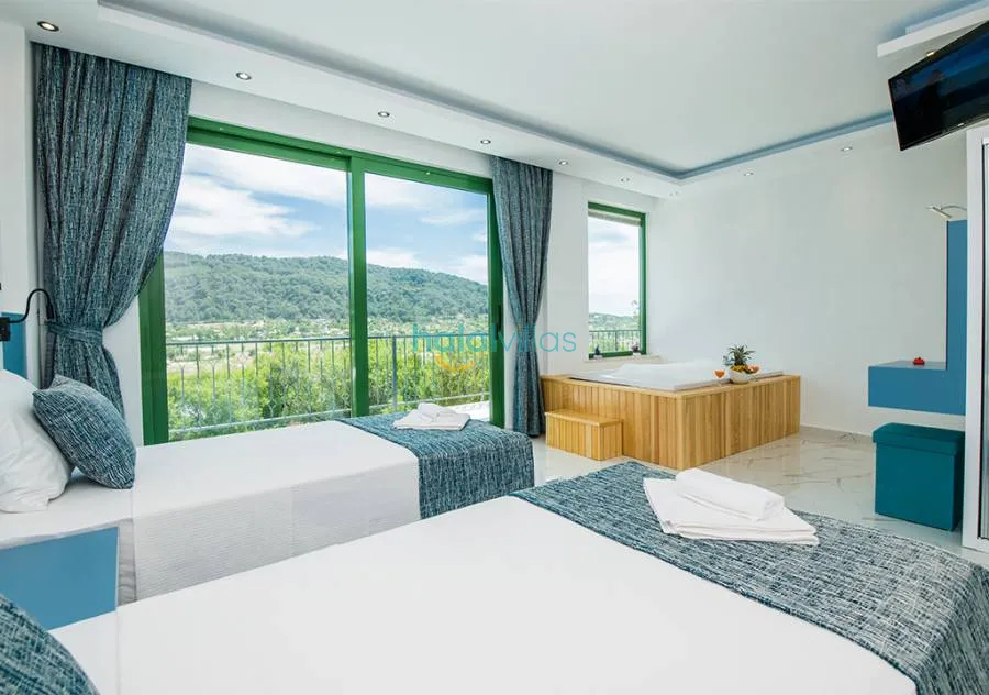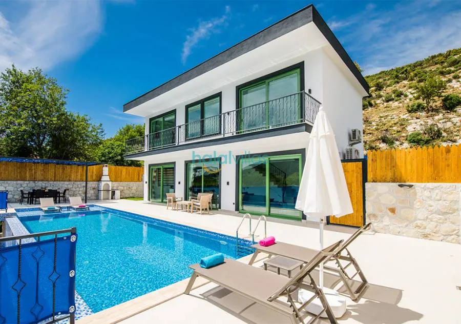 2 BedThis 2-bedroom villa, located in the tranquil Sarıbelen area of Kalkan, is designed with privacy and comfort in mind. The pool area is completely secluded from view, making it an excellent choice for conservative families and honeymoon couples seeking a peaceful retreat.